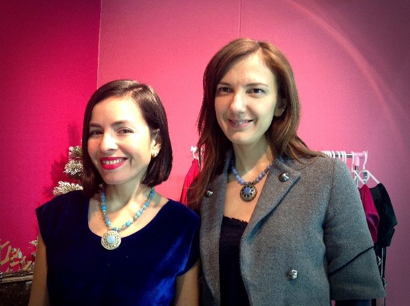 Susana and I wearing statement necklaces